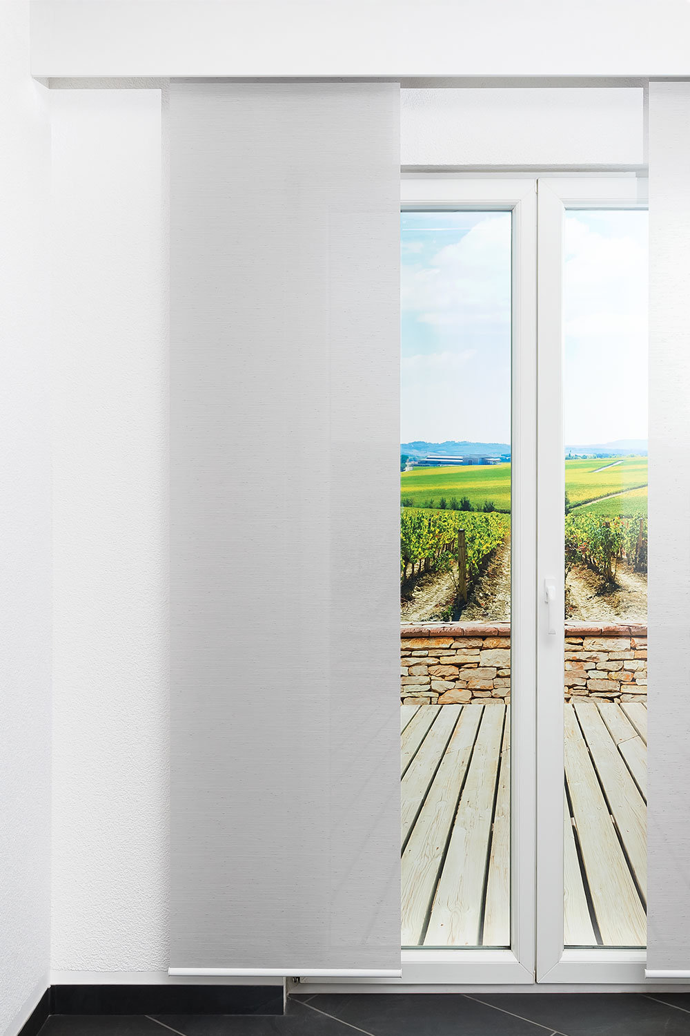 Dieser Flächenvorhang überzeugt durch eine besonders feine und natürliche Webstruktur, durch die das Tageslicht sehr wirkungsvoll in Szene gesetzt wird. Auch als Sichtschutz ist der Behang geeignet. Durch das feine Gewebe sind höchstens noch Umrisse erkennbar. Ideal ist die feuchtraumgeeignete Schiebegardine für die Fensterdeko im Bad und in der Küche, denn das Material lässt noch viel Tageslicht herein.
