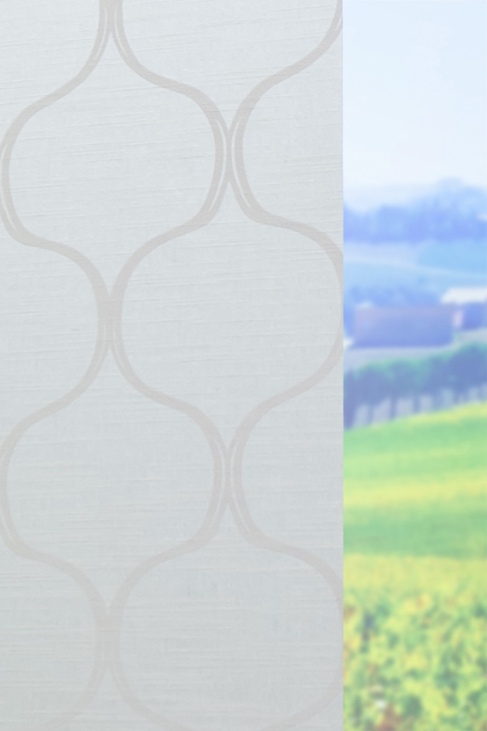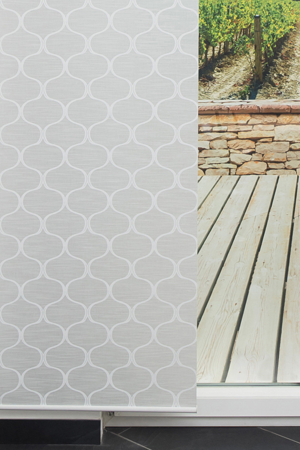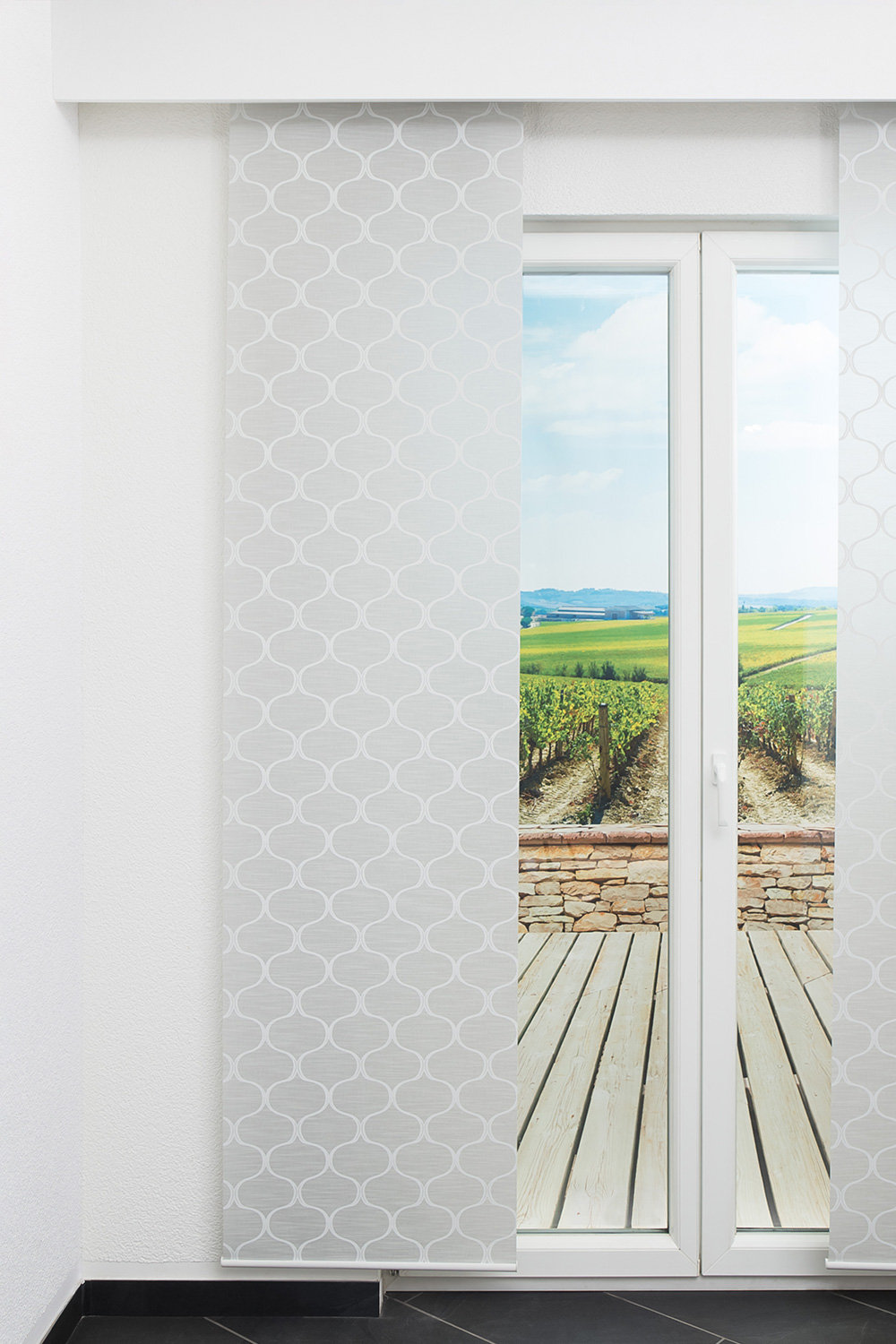 Durch sein schönes und ausdrucksstarkes Design lässt dieser Flächenvorhang Ihren Raum aufleben. Der Stoff wird von einem in sich geschlossenen Muster aus ineinander übergehenden, wabenförmigen Elementen bestimmt, die Rückseite ist unifarben. Die Formen sind ein bisschen vom Vintage- oder Retro-Stil angehaucht und können daher besonders den Geschmack der Fans von diesen treffen. Durch das dennoch zurückgenommene Design mit dem weissen Muster auf dem grau melierten, lichtdurchlässigen Stoff fügt sich dieser Fensterschmuck aber in beinahe jeden Raum ein, hüllt ihn in eine freundliche Atmosphäre und verleiht ihm einen stillen und doch reizvollen Blickfang. Das schwer entflammbare Gewebe eignet sich auch für den Einsatz in Feuchträumen und kann mit einem feuchten Lappen leicht gereinigt werden.