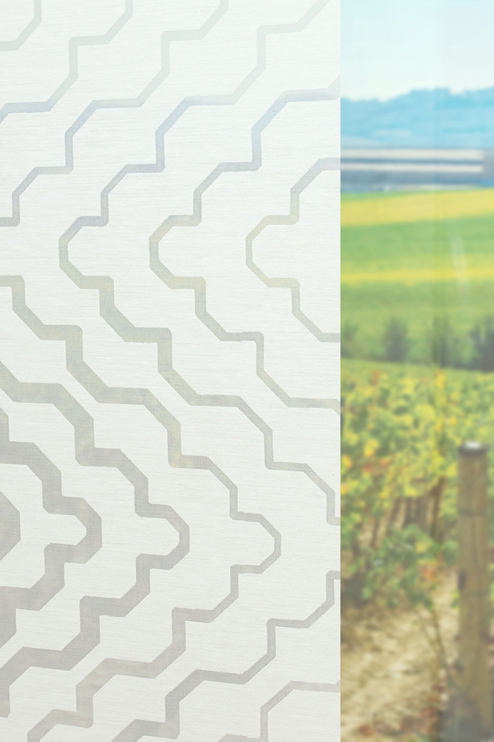 Dieser Flächenvorhang hält sich zurück, das grafische Muster gestaltet dennoch einen schmuckvollen Blickfang. Den weissen Stoff ziert ein modernes Design, das sich aus einer geometrischen und leicht plastisch erscheinenden Musterfolge aus aufeinander geschichteten Elementen in transparenter Optik zusammensetzt. Da der hauchzarte Stoff viel Licht in den Raum lässt, ergeben sich stimmungsvolle Licht- und Schattenspiele. Eine reduzierte Einrichtung lässt sich dadurch auflockern und lebendig gestalten. In einem farblich auffälligen Interieur kann der Flächenvorhang einen entspannenden Ruhepol darstellen. Im Zusammenspiel mit dezenten Tönen wirkt er edel und stilvoll, intensive Töne lässt er noch stärker hervortreten. Darüber hinaus zeichnet sich der Fensterschmuck durch seine schwere Entflammbarkeit aus und ist durch das Abwischen mit einem feuchten Tuch schnell und einfach zu reinigen.