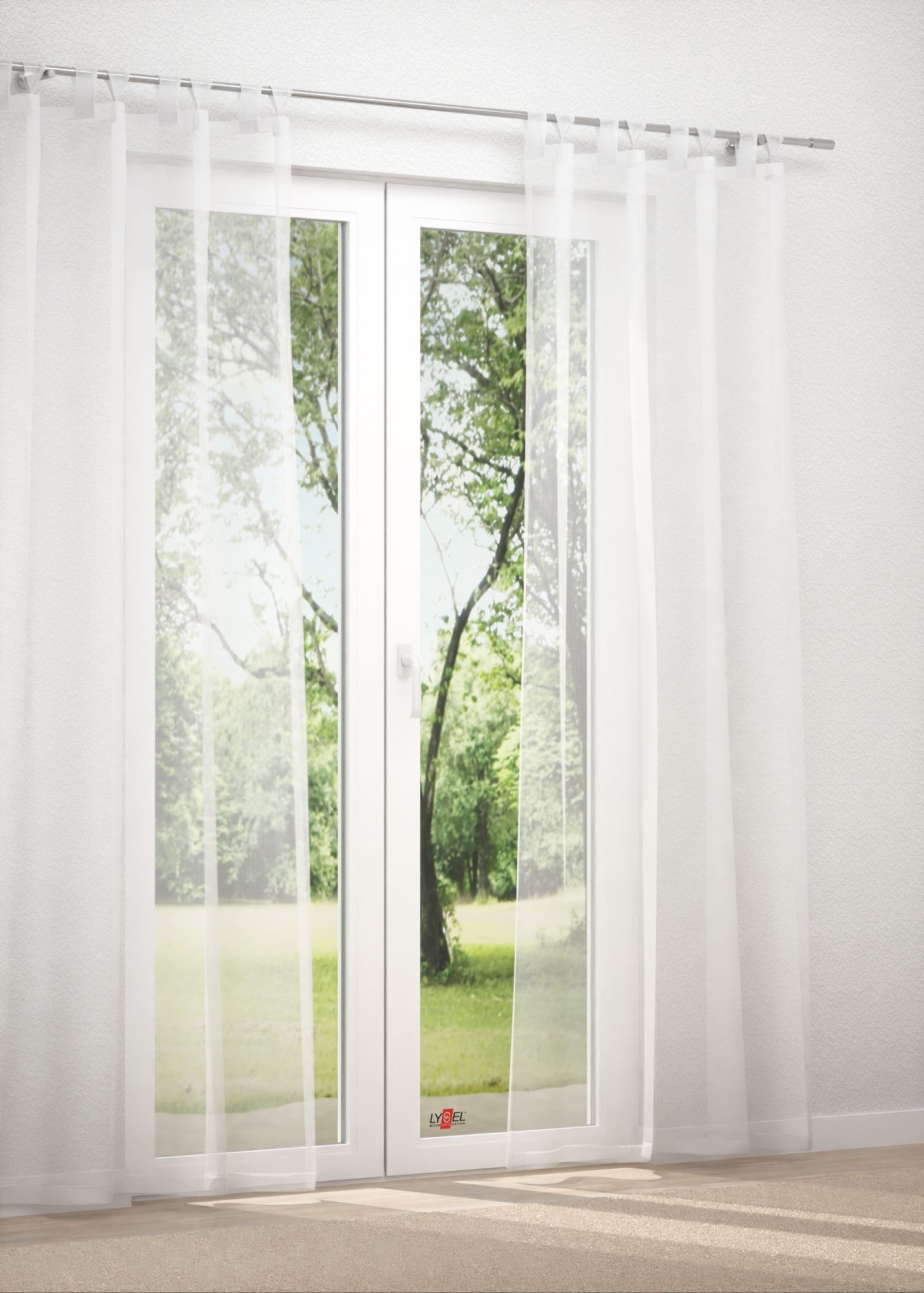 Dieser transparente Stoff mit eingearbeitetem Bleiband ist perfekt für Ihre Deko mit Gardine oder Raffrollo. Die hauchfeine Struktur kann an Organza erinnern. Dadurch gestalten Sie den Raum freundlich und einladend, er wirkt optisch grösser. Die Sonnenstrahlen werden nur leicht gemildert und gedämpft, am Fenster drapiert erfüllt der durchsichtige Behang dekorative Zwecke und kann ausserdem im Objektbereich eingesetzt werden. Der Stoff zeichnet sich durch eine hohe Schiebefestigkeit aus, die Aufschluss über die Widerstandsfähigkeit der Kett- und Schussfäden bei Bewegung gibt. Also bleibt die Form auch bei Verschieben des Stoffes erhalten. Möchten Sie den Stoff reinigen, nehmen Sie den Schonwaschgang bei 30 Grad.
