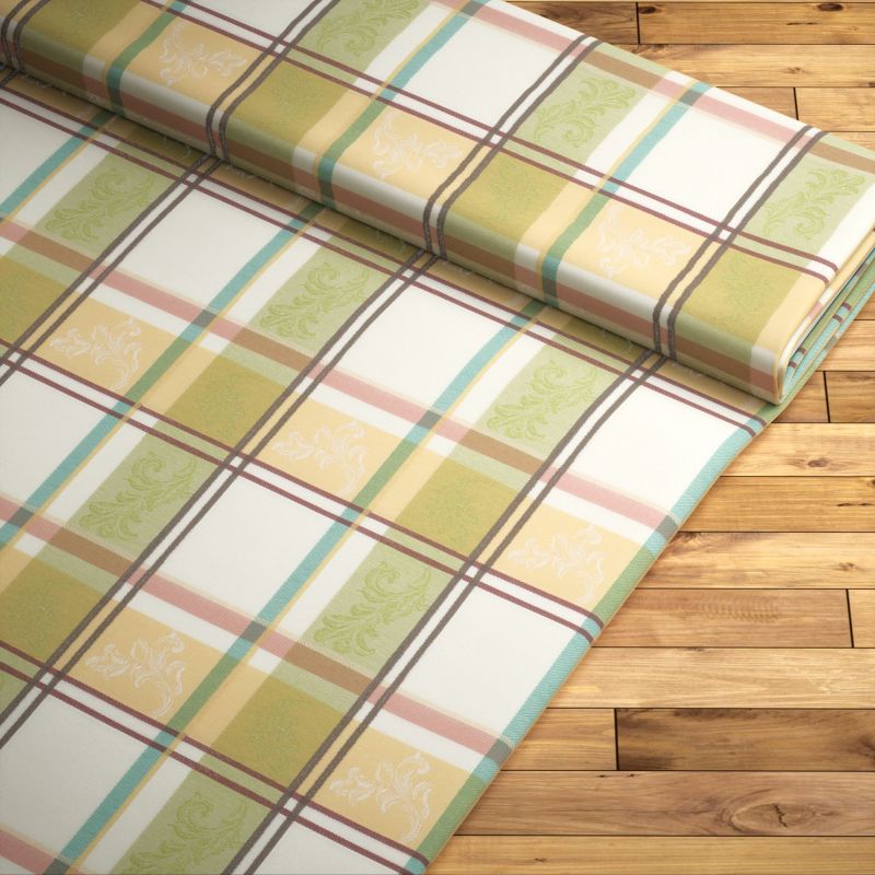 Aus diesem lichtdurchlässigem Dekostoff lassen sich eine ganze Reihe von Heimtextilien fertigen: Kissenbezüge, Raffrollos, Gardinenschals. Dabei wirkt das mehrfarbige Karomuster mit bunten Kästchen und unterschiedlich breiten Linien lebendig und ausdrucksstark. Die dezent schimmernden Blütenstickereien haben einen fast schon ausladenden, opulenten Charakter und wirken im Zusammenspiel mit dem Design wunderbar freundlich und wohnlich. Wird der Stoff für eine Fensterdeko, also einen Gardinenschal oder ein Raffrollo, verwendet, gewinnt die Lichtdurchlässigkeit noch mehr an Bedeutung. Und zwar haben Sie mit diesem Mischgewebe aus gleichen Teilen Polyester und Polyacryl die perfekte Balance aus Helligkeit und Sichtschutz. Letzterer ist nämlich tagsüber wie nachts gegeben, Ihre Privatsphäre bleibt gewahrt.