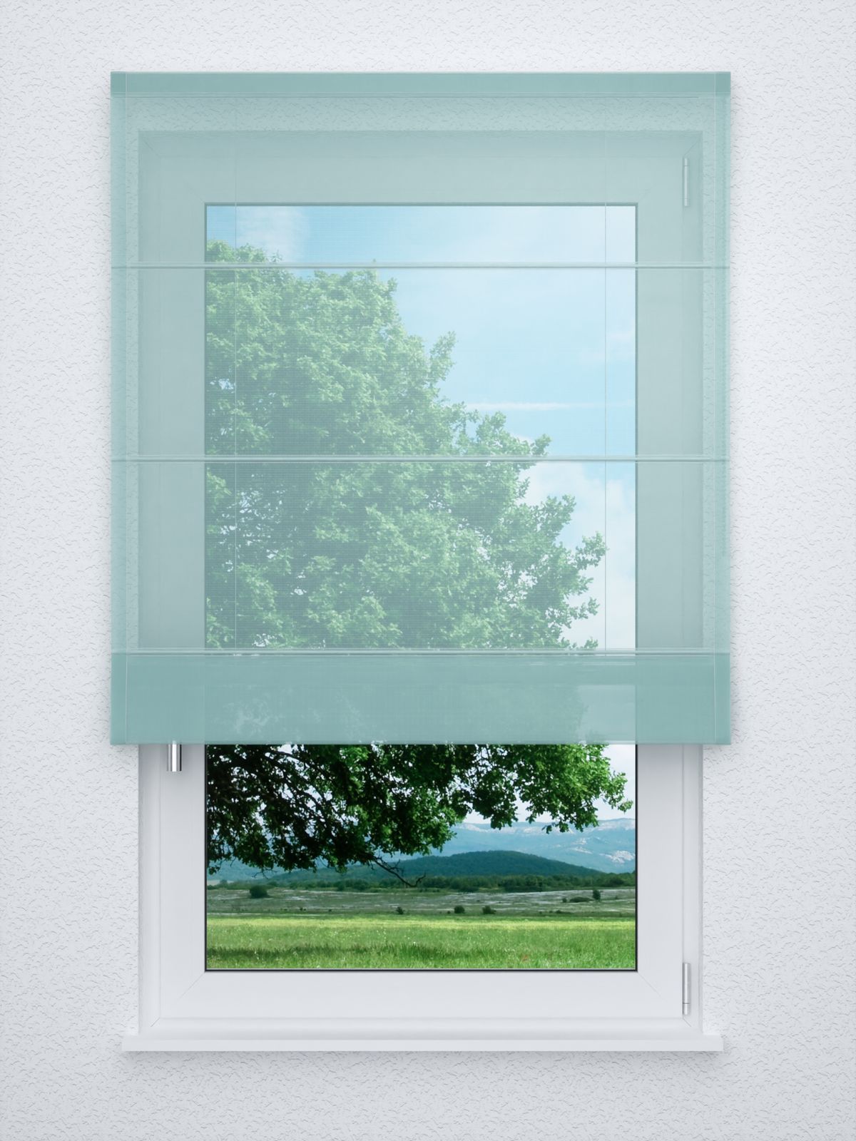 - Ein Raffrollo classic aus transparentem Stoff, 100% Polyester - individuell nach Ihren Wunschmassen gefertigt. Geliefert wird der Artikel inklusive Befestigungsmaterial.