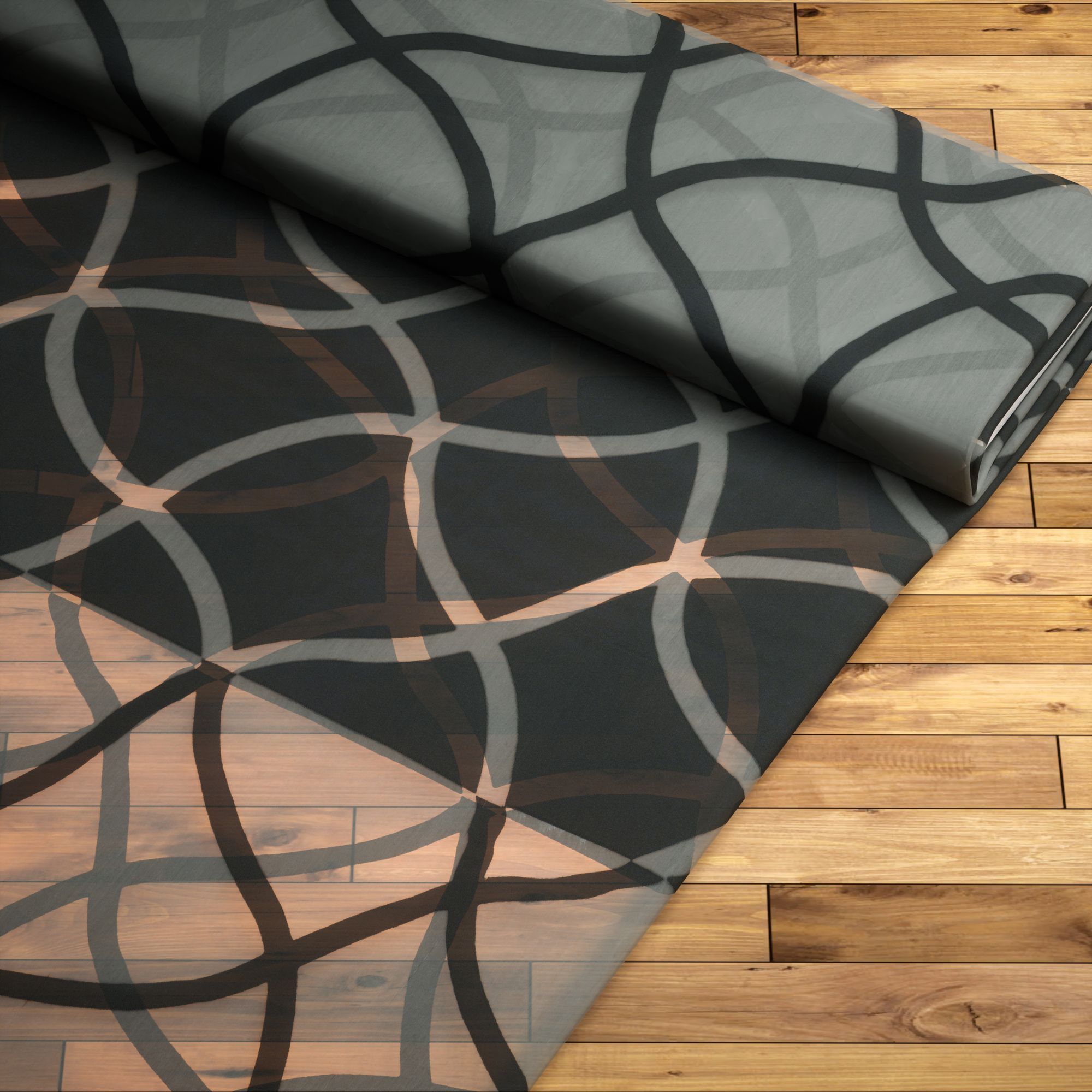 Hier ist der gesamte Stoff mit einem Muster in Ausbrenner-Optik gestaltet. Die halbtransparenten, geschwungenen Linien sind das entscheidende Designelement und nehmen die gesamte Oberfläche ein. Durch die Schnittpunkte gibt sich ein an ein geflochtenes Netz erinnerndes Design zu erkennen. Entfernt kann es auch an vom Wind bewegtes Wasser erinnern. Die unterschiedlichen Transparenzen lassen lebendige und ausdrucksstarke Effekte entstehen, die besonders bei einer Fensterdeko ihre ganze Wirkung entfalten. Nutzen Sie den Konfigurator, um beispielsweise ein Raffrollo oder einen Gardinenschal nach Mass individuell zusammenzustellen. Dabei können Sie auch Einfluss auf den oberen Abschluss, also die Aufhängung, nehmen. Als Tischdecke oder Tischläufer eingesetzt lässt dieses Modell die Oberfläche des Tisches bzw. die Optik des darunterliegenden Stoffes zum Vorschein kommen. Möchten Sie eigene kreative Ideen umsetzen, bestellen Sie die Meterware.